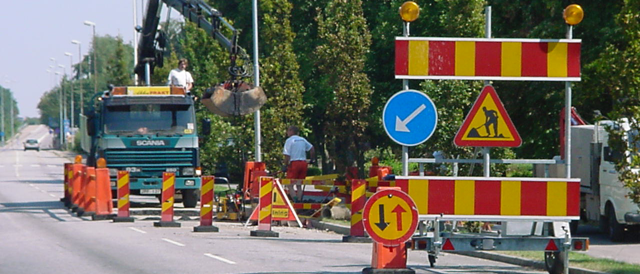 Tillfälliga skyltar och utrustning för arbetszoner.