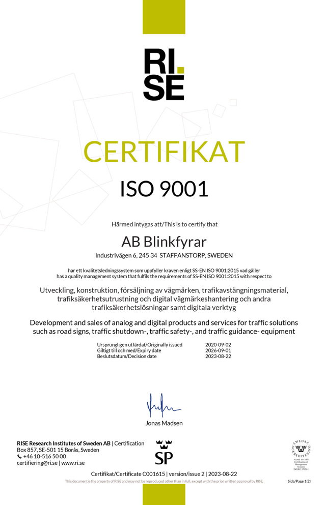 AB Blinkfyrars produkter präglas av en kvalitetsnivå som innebär att de vid varje tidpunkt uppfyller ställda krav och tillämpliga författningskrav, lagar och föreskrifter.