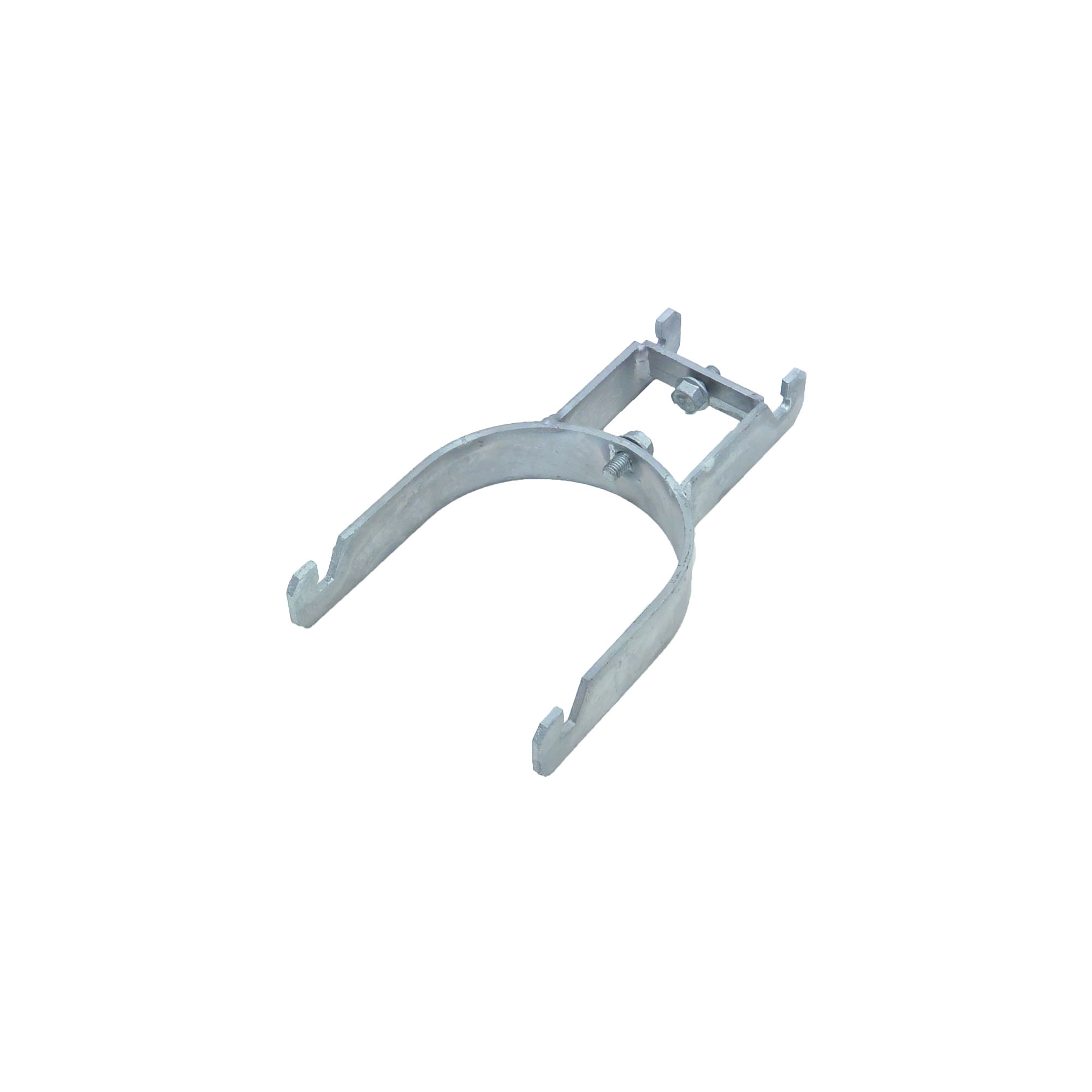 Dubbelklammer i varmförzinkat stål för runda rör.