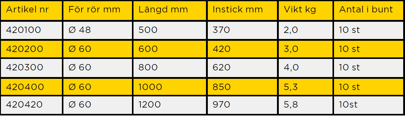 Rörfundament för 60mm L=600mm instick 420mm