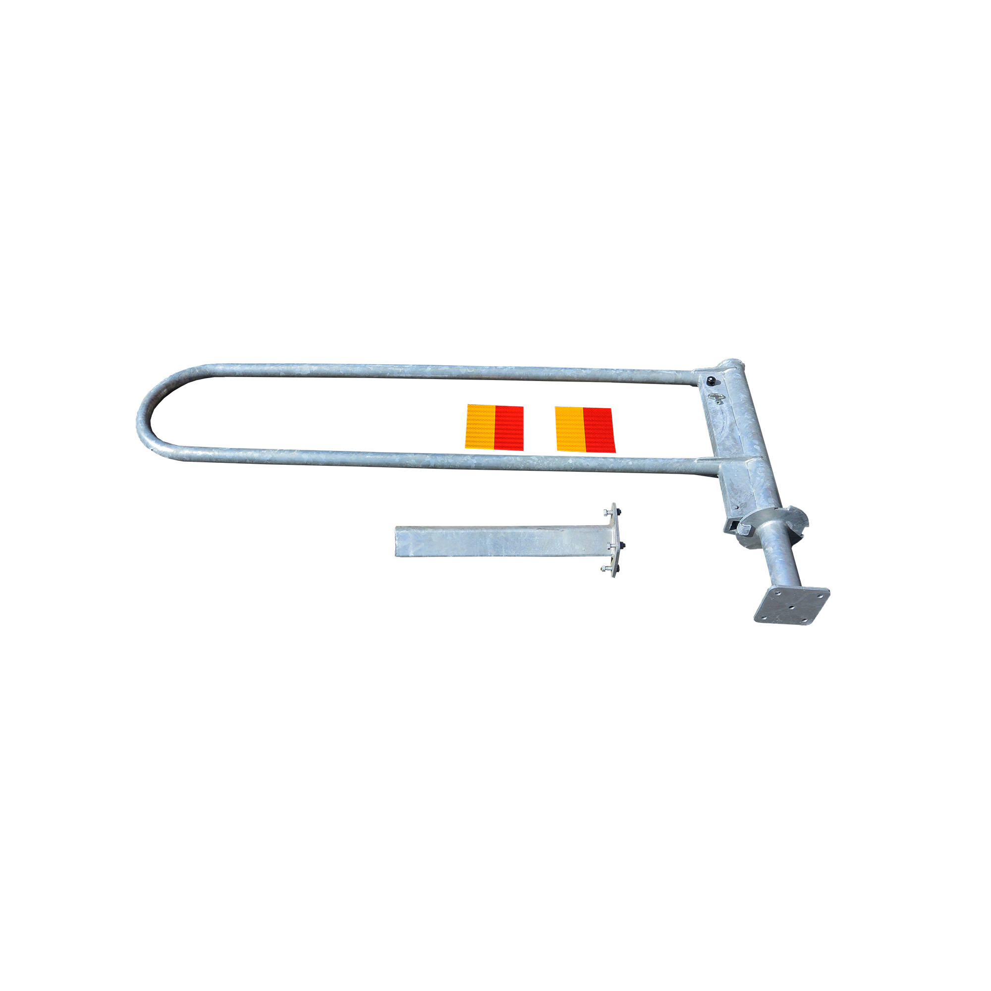 P-hinder eller cykelfålla i varmförzinkat stål. Öppningsbar åt båda hållen och låsning sker med trekantsnyckel samt om så önskas med ett hänglås/brandkårslås. Fundament för platsgjutning eller som instick i prefabricerat fundament ingår. Går även att låsa i öppet läge.