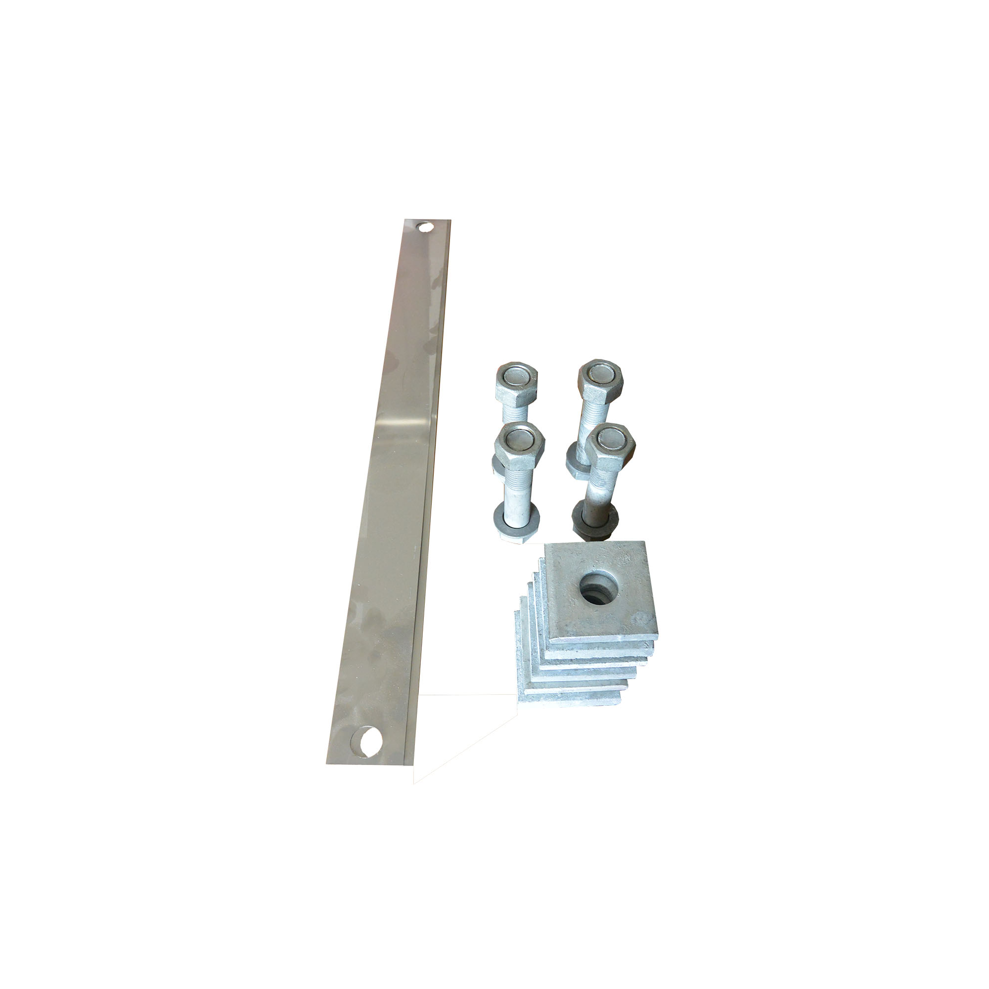 4 st FZV bultar M20x100 4 st muttrar M20 8 st brickor 70x70x10 2 st rostfri plåt 560x50