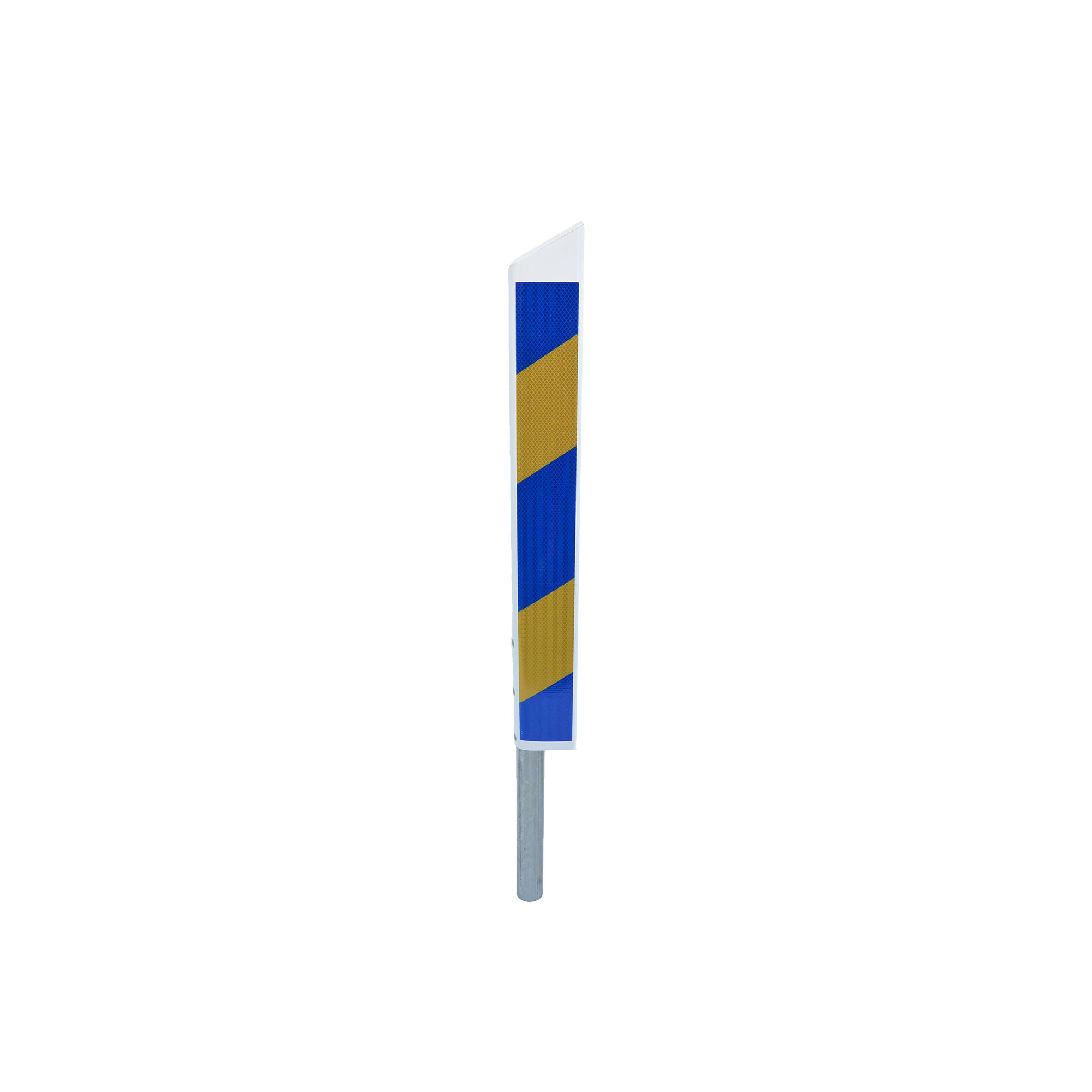 En optimal farthinderstolpe, dubbelsidig med X3 markeringsskärm, inklusive topphatt, monteras enkelt i rör eller betongfundament. Längd 1400/1000 mm Bredd 120 mm Diameter 60 mm/rör